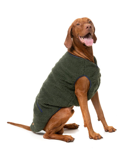 FuzzYard Nara Reversible Dog Jacket – Sherpa & Quilted 2-in-1 Coat (Dark Moss)