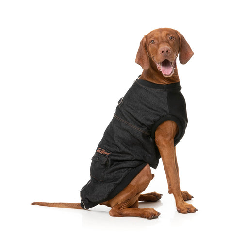 FuzzYard Kojima Dog Jacket – 2-in-1 Harness & Denim Style Coat (Black)