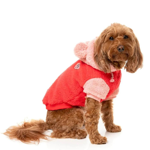 FuzzYard Winnie Hoodie – Red - Cosy Dog Hoodie with Teddy Ears