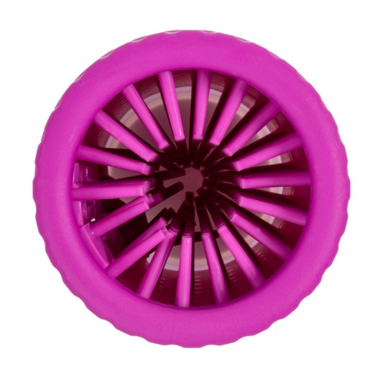 The Dexas MudBuster™ in Medium Fuchsia offers swift cleaning for your dog’s muddy paws, preventing them from tracking dirt throughout your home. With soft, gentle, thick silicone bristles housed within an ergonomic tumbler, this device makes paw cleaning a breeze. Simply add water, insert the dirty paw, twist, dab it dry, and repeat for the remaining paws. Enjoy hassle-free cleanup after outdoor adventures with your furry companion.