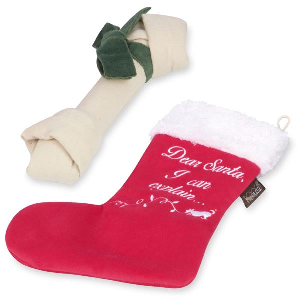 Being a good dog all year round can be ruff! So reward you dog at Christmas with this adorable christmas stocking with an added extra toy inside!