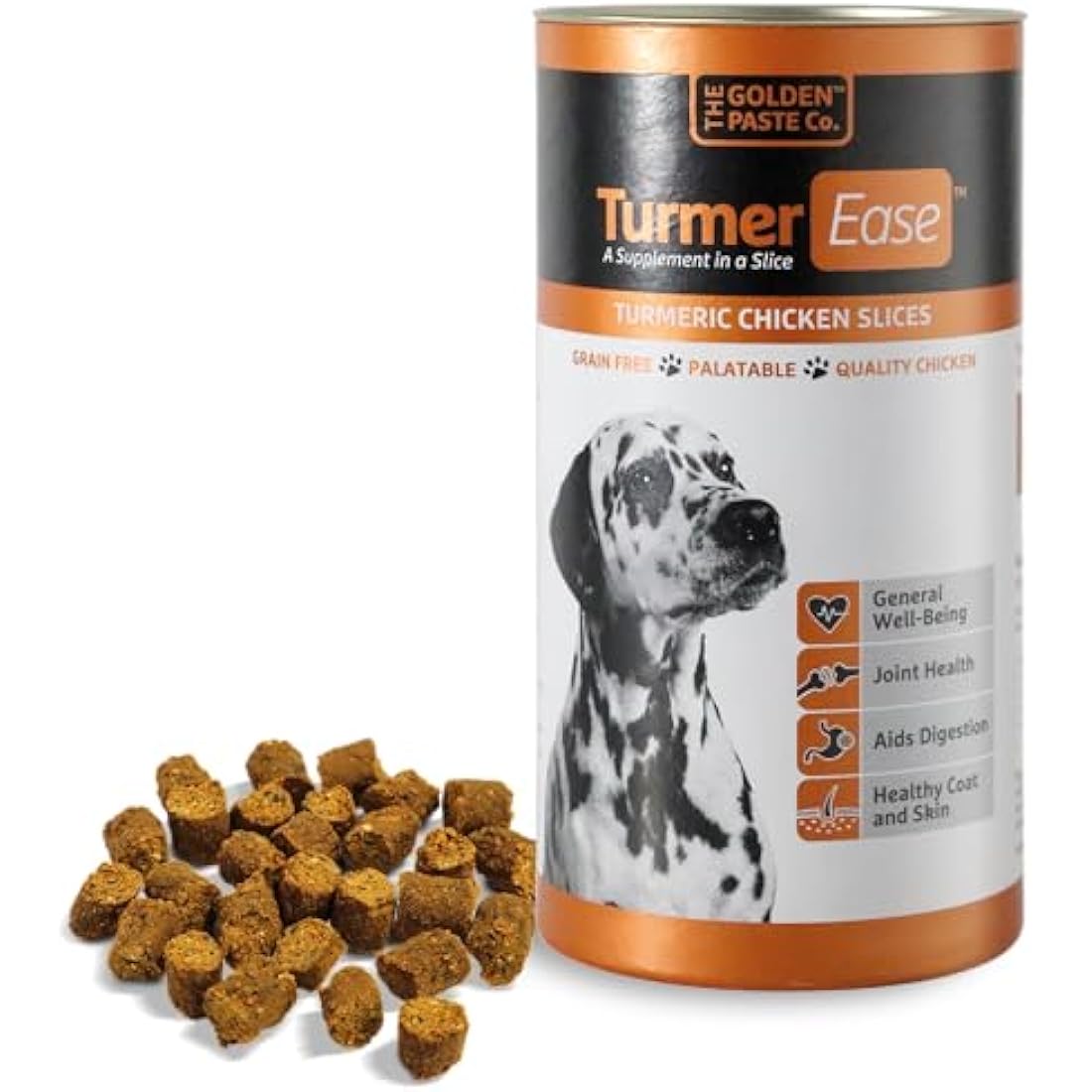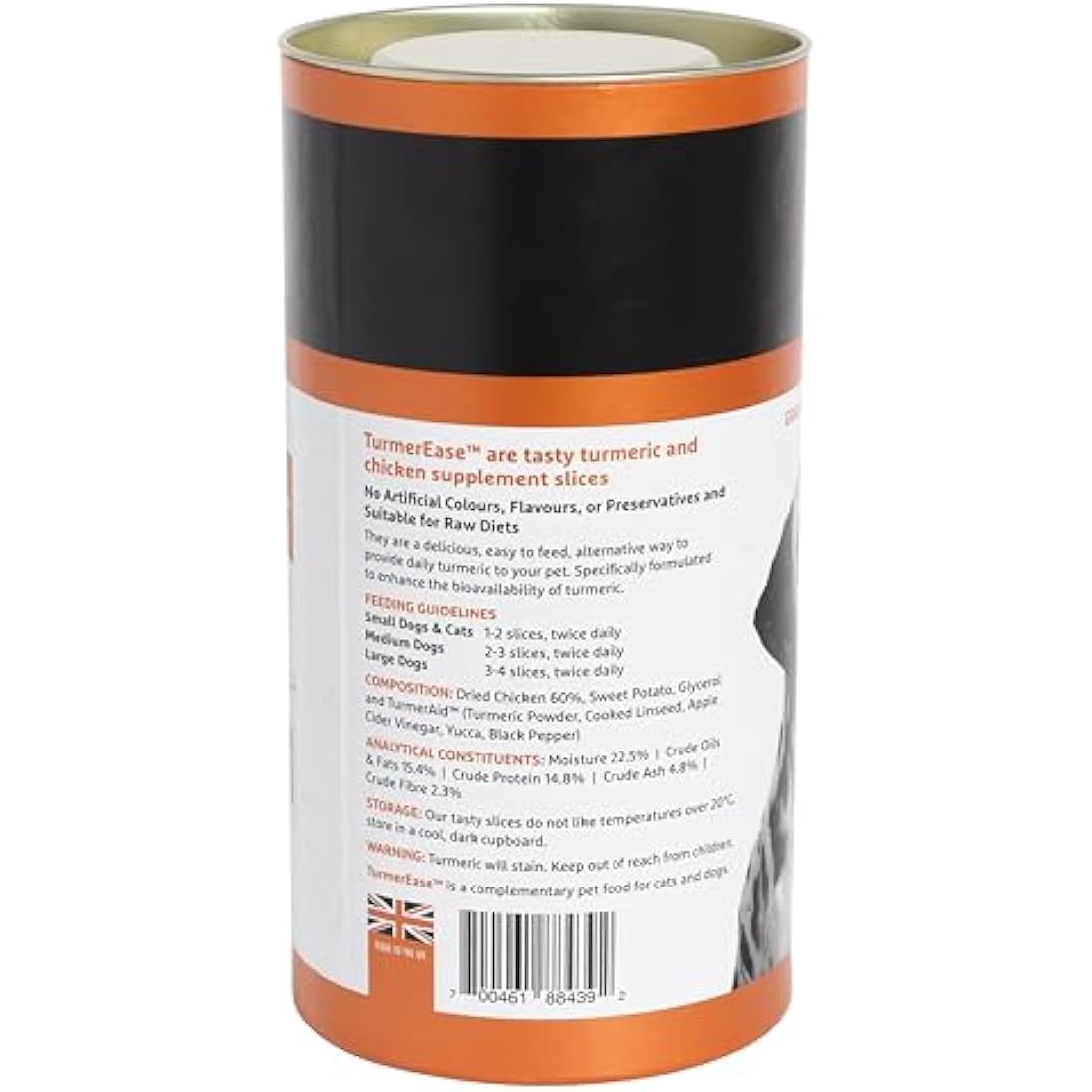 TurmerEase Chicken & Turmeric Slices help maintain a healthy, shiny coat. Free from artificial colours, flavours and preservatives, they’re suitable for pets of all ages, including puppies and kittens.